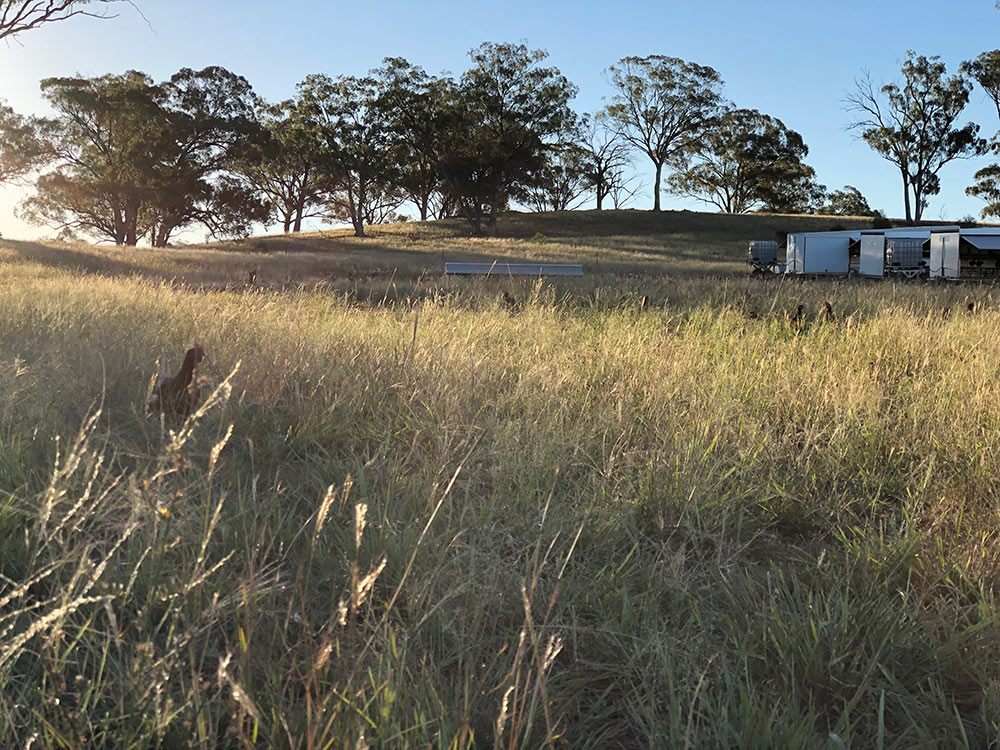 Like all enterprises on Gillinghall, Farmer Brown’s Pastured Eggs operates under a regenerative philosophy. The regular moving of the chicken caravans not only ensures fresh pasture for the hens, but also results in improved pasture where the hens have been fertilising the soil they were temporarily camped on. We close the loop by growing and using our own feed for the hens, minimising our environmental footprint.